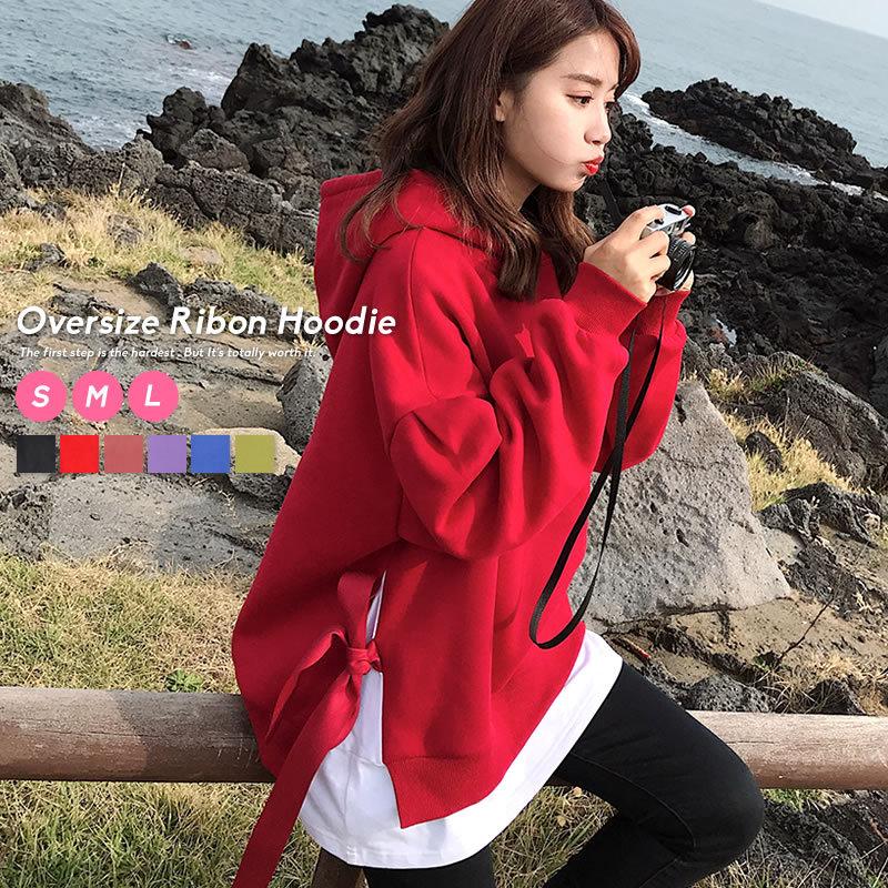 パーカー レディース サイドリボン オーバーサイズ レイヤード 重ね着風 かわいい ブランド 韓国 ストリート系 ファッション Stptw005 Olchang 韓国ファッション 通販 Yahoo ショッピング